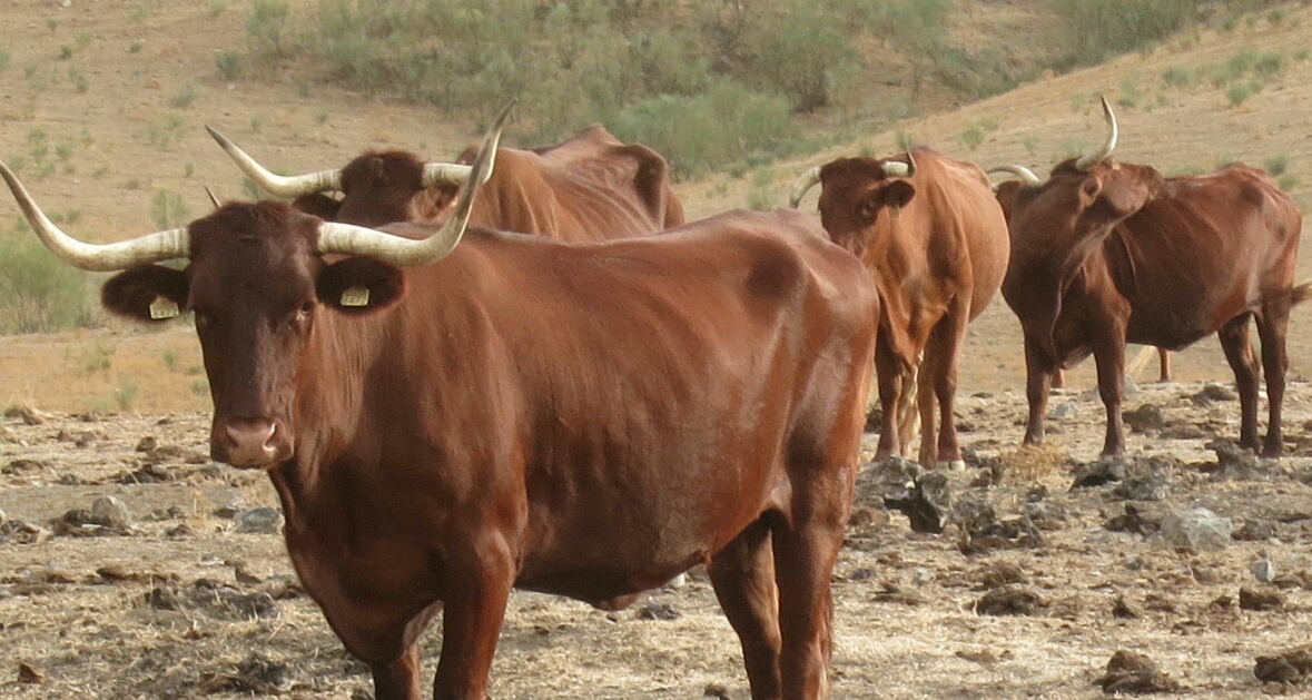 After Real de la Jara we were back on a dirt path through fields and passed lots of animals- sheep,pigs, Cows and Bulls and even a couple of large dog a who l, fortunately had no interest in us.